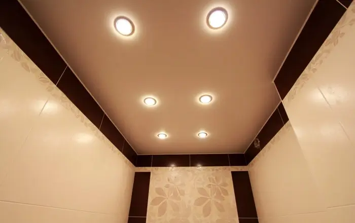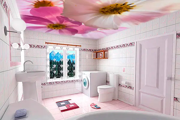 Алмапотолок устанавливает натяжные потолки в ванной комнате и туалете в Алматы по цене 1800 тг/м2.