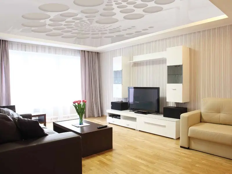 Мало выбрать интересную форму, необходимо грамотно подчеркнуть ее цветовым решением и видом полотна. Перечислим основные варианты поливинилхлоридных полотен: