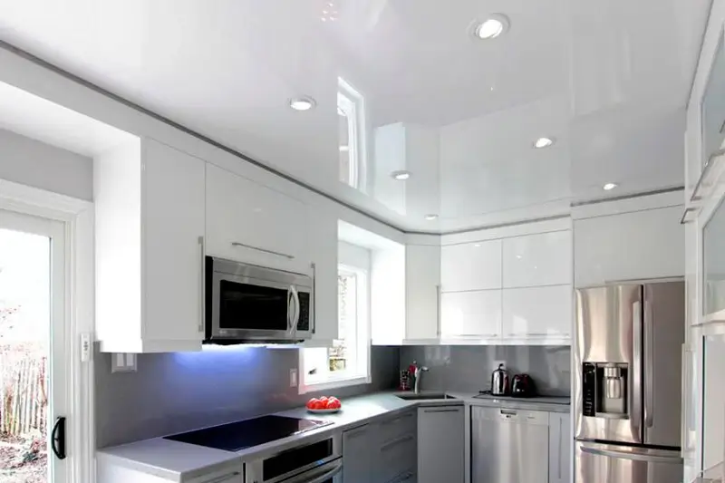 Пожалуй, самым популярным выбором среди полотен является именно глянец. Имея особенность в виде зеркального отражения поверхности, он может визуально расширить комнату, что подходит в случае с квартирами небольших размеров.