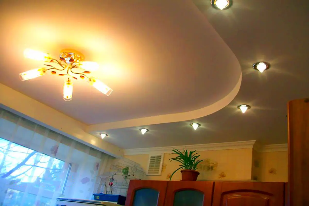 В этом отношении потолки из гипсокартона и натяжные примерно одинаковы - оба материала предоставляют возможность создания сложных многоуровневых композиций.
