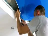 Для монтажа натяжных потолков из ПВХ используется специальная тепловая пушка, для тканевых она не требуется.