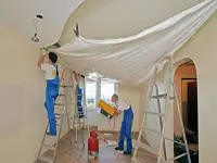 Главным минусом окраски потолков является сложность. Красить потолок нужно обязательно до того, как будут отделаны стены и пол. Кроме того, перед покраской нужно провести длительную подготовку: грунтовку, шпатлевку, шлифовку.