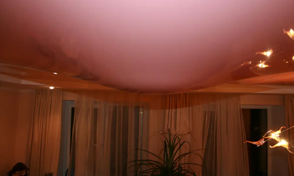 Такой ремонт натяжных потолков возможен благодаря эластичности ПВХ-плёнки. При воздействии больших объемов воды она растягивается, а высыхая, приобретает изначальную форму, не теряя ни качества, ни цвета.