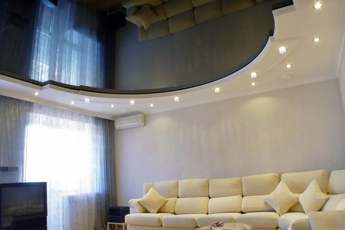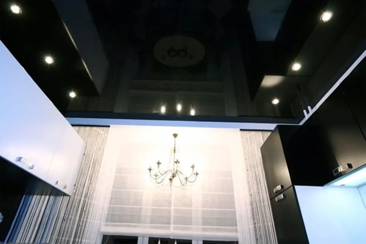 Черные натяжные потолки стали применяться в отделке интерьеров сравнительно не так давно. Потолочное покрытие в черном цветовом решении – для многих рискованный шаг. Однако те, кто согласился на это, как правило, не перестают восхищаться многогранностью и красотой такого изделия.