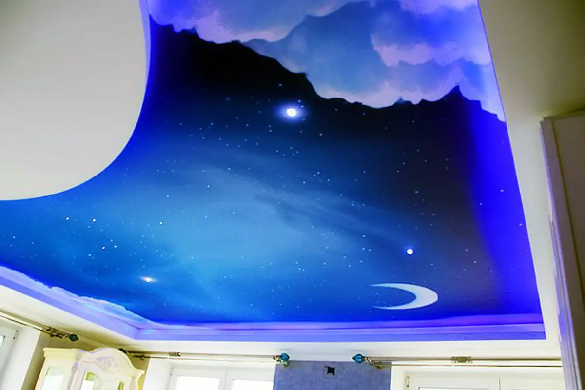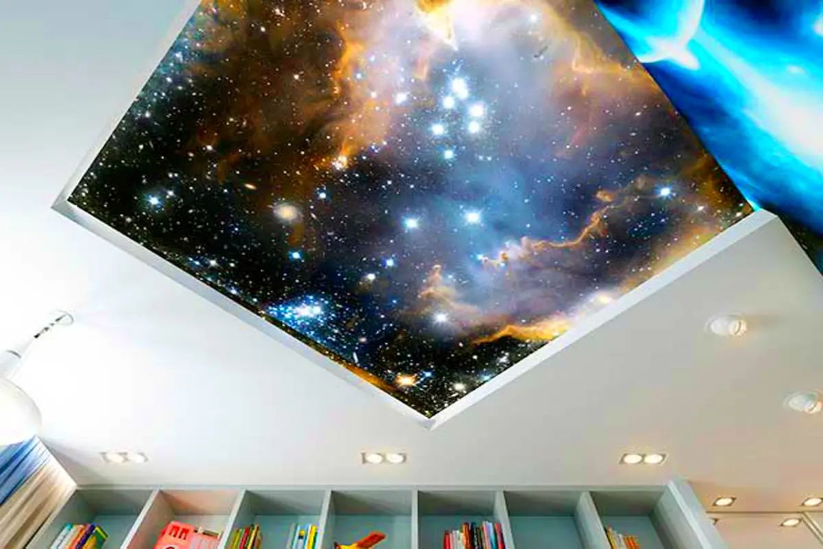 Натяжной потолок – идеальная поверхность для изображения звездного неба. Ровные потолки позволяют создавать максимально четкие, реалистичные картины.