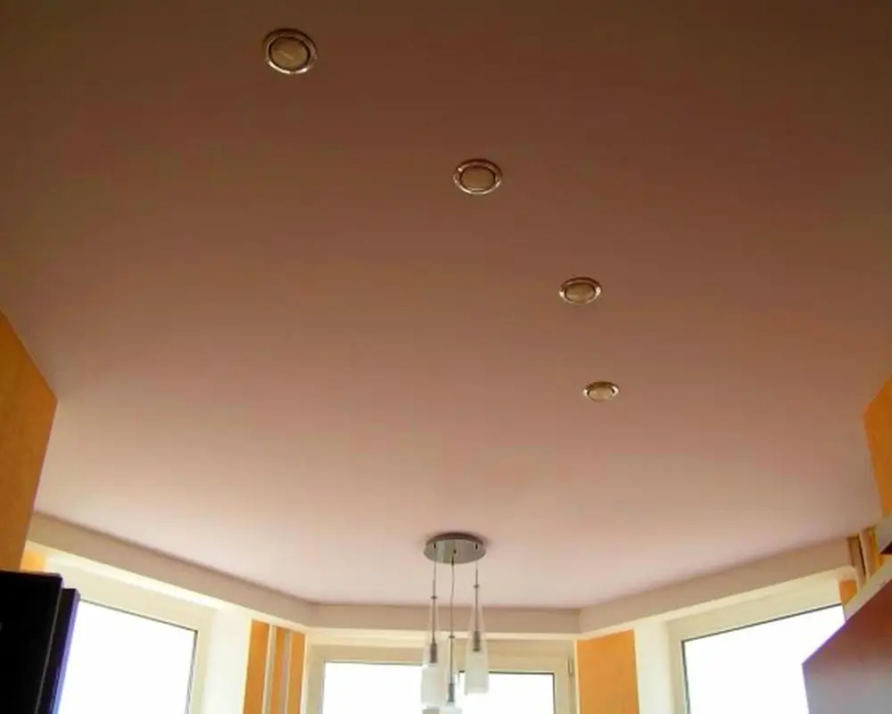 - Особые возможности натяжения ткани дают возможность установить натяжной потолок без особых декоративных элементов по краям, при этом, не оставляя никакого зазора между стеной;