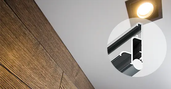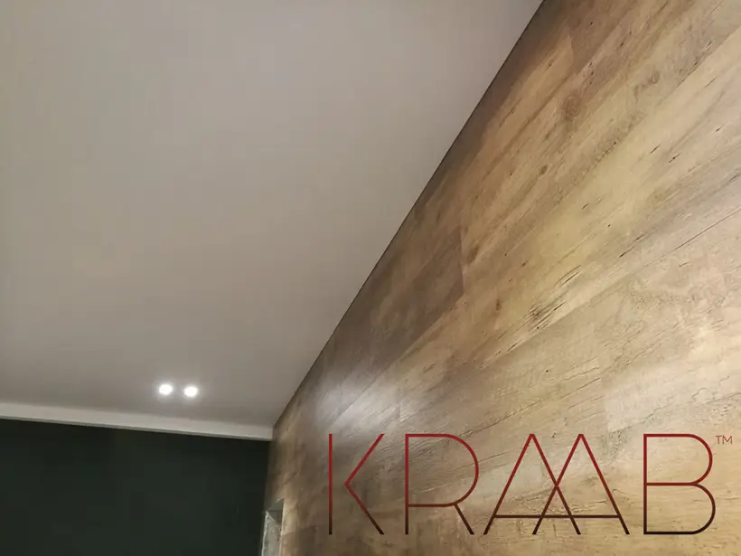 С помощью системы крепления Kraab потолок по всему периметру плотна примыкает к стенам.